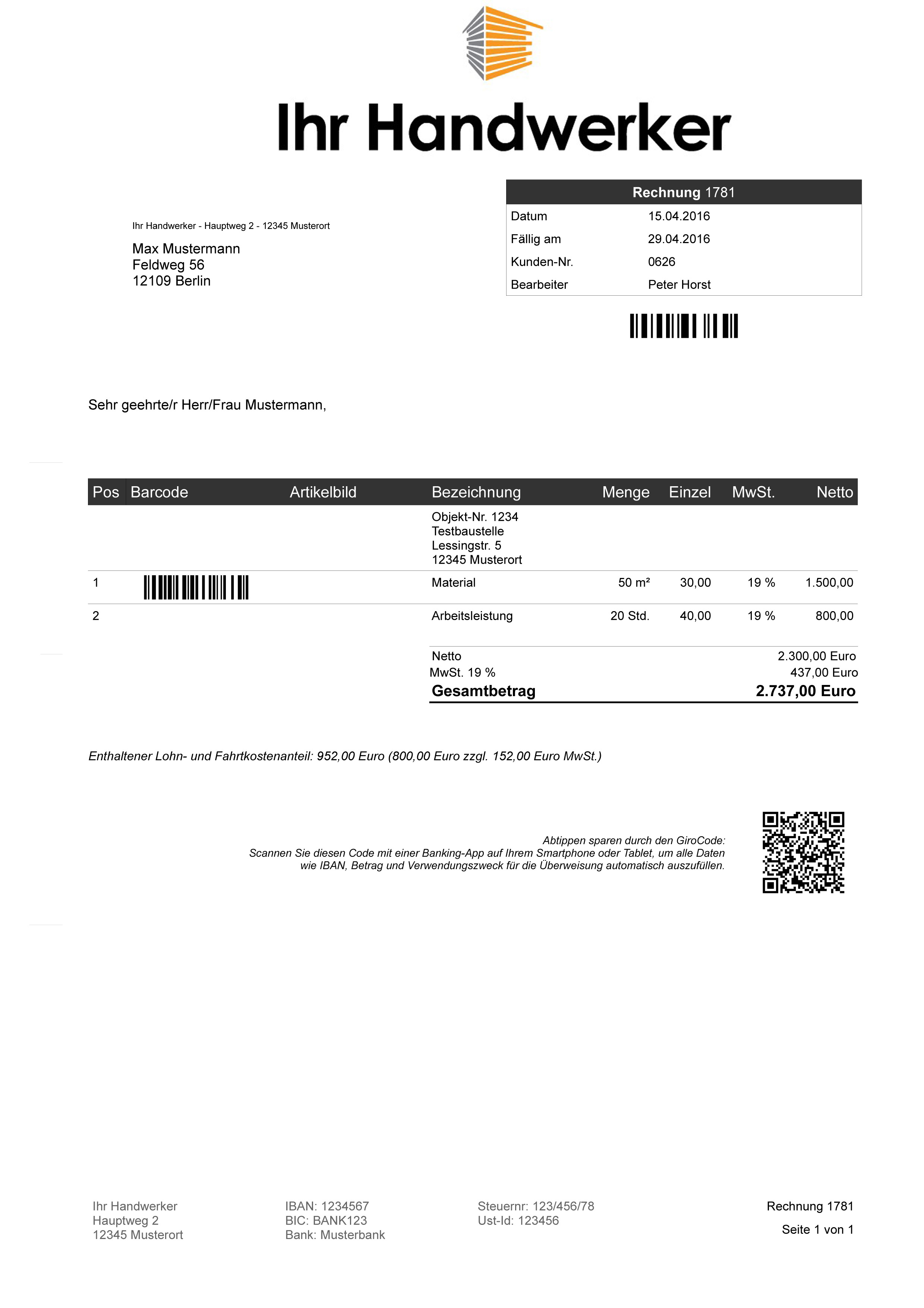 Die Umsatzsteuer wird in der Rechnungsstellung korrekt berechnet und in der Summe nach den unterschiedlichen Mehrwerststeuer-Sätzen in der Rechnung ausgewiesen.